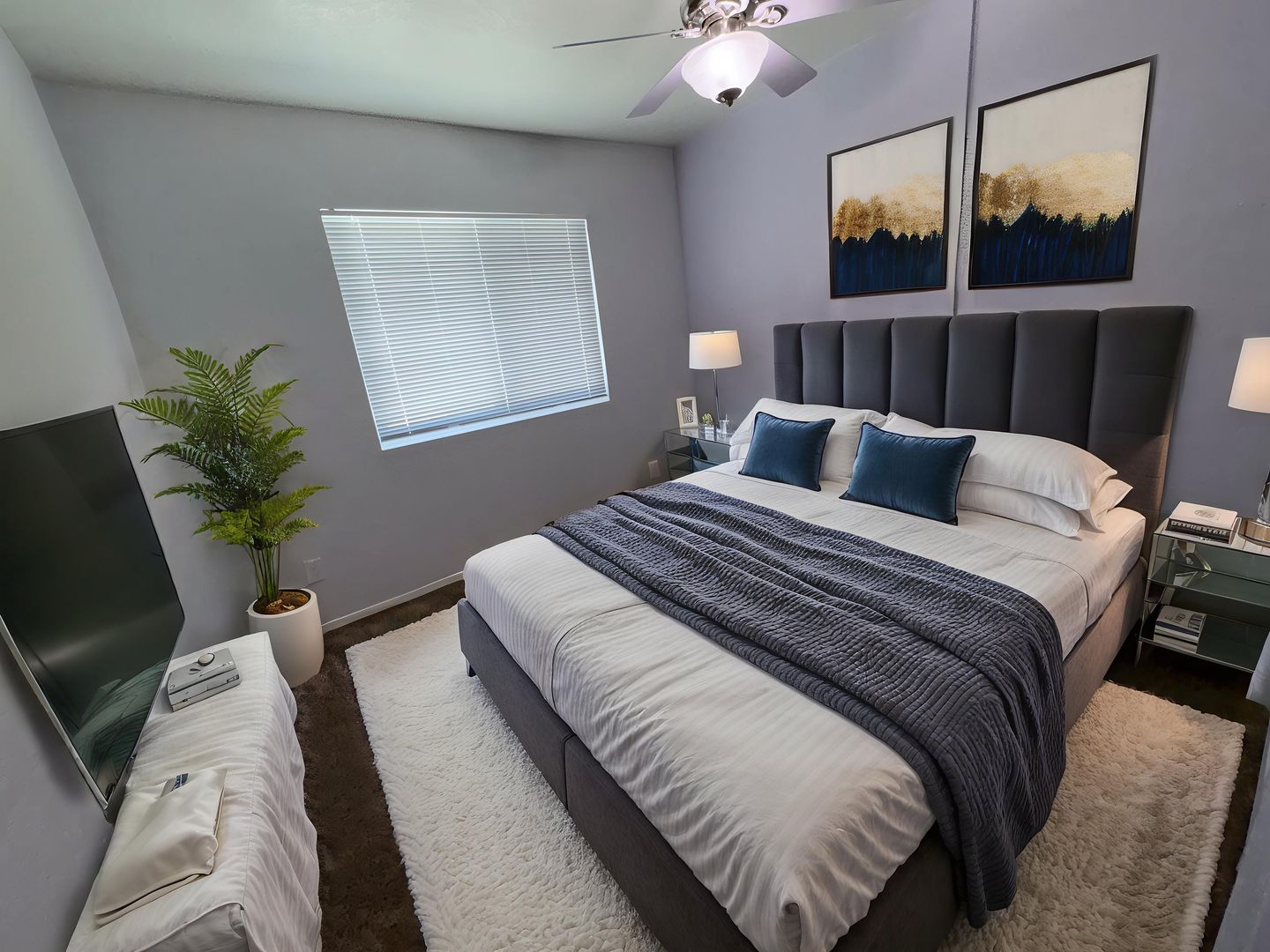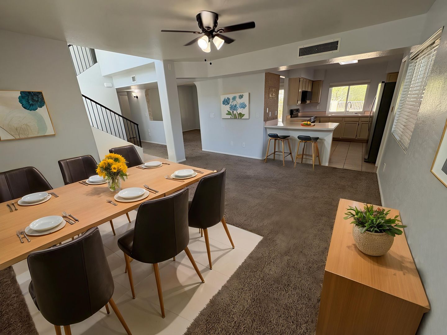 Beautifully updated & exceptionally spacious 4 bedroom, 2.5 bath home offers a flexible floorplan, modern upgrades, & a peaceful natural setting with no rear neighbors. Located in a desirable Eastside neighborhood, property delivers comfort, privacy, & room to grow. Features: large first-floor bonus room ideal for office/media room,/playroom, 1st floor powder room, family/dining room with plenty of space for entertaining, formal dining room for gatherings & holidays, new kitchen appliances, new plumbing-no polybutylene pipes, newer HVAC system for year-round efficiency, laundry room with washer & dryer, mature fruit trees providing seasonal harvest, backs to a natural desert wash for added privacy & scenic views, low-maintenance landscaping & quiet neighborhood setting, community pool. What Makes This Home Stand Out