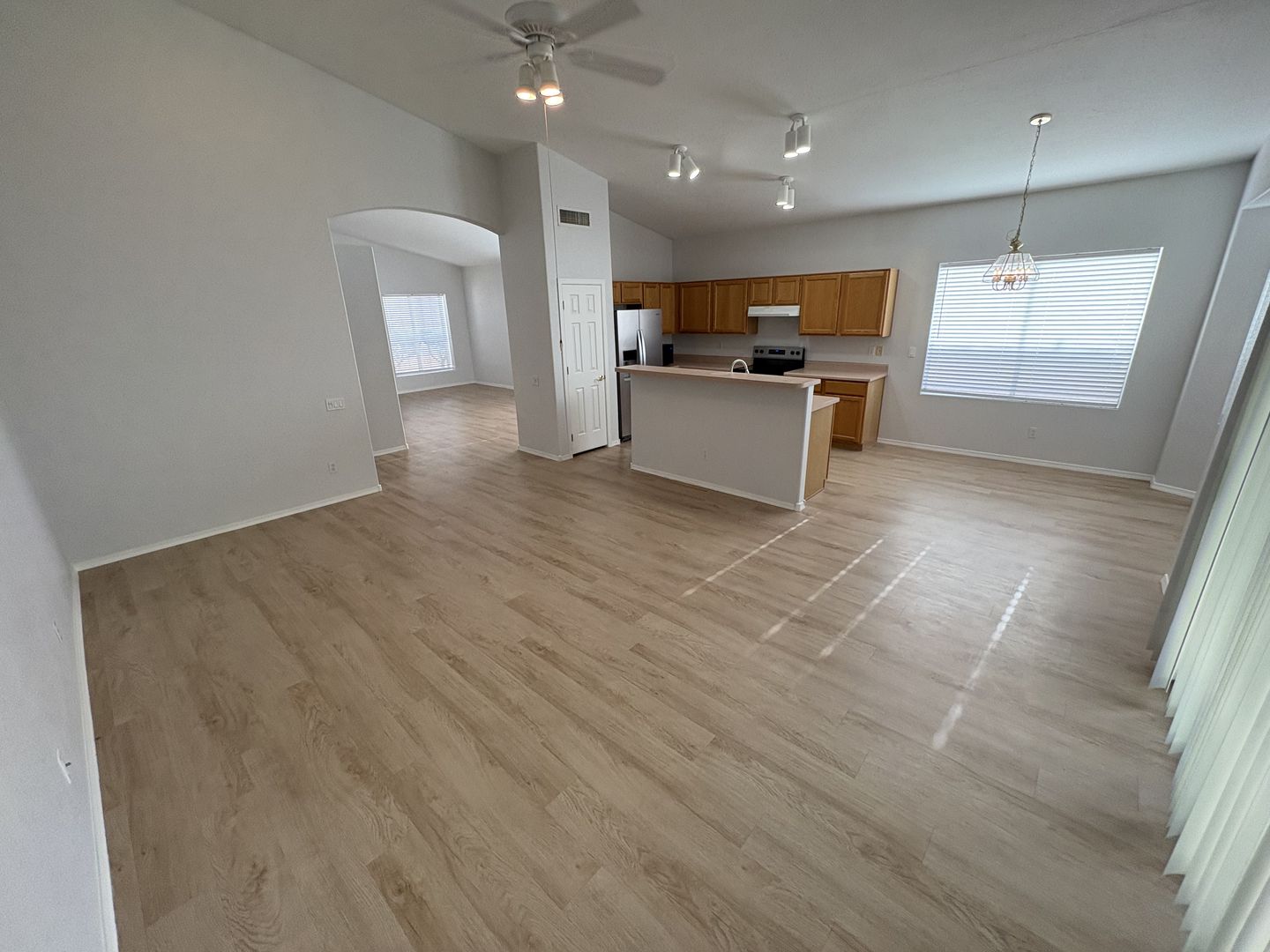 Sunrise & Sabino Canyon Four Bedroom Rental in North Tucson’s Encanto Canyon subdivision offers a spacious, well-appointed home within walking distance of Sabino Canyon. The 4-bedroom, 2-bath layout features vaulted ceilings, a large master bedroom, and an open living/dining area plus a separate family room. The kitchen is updated with all-new stainless-steel appliances, and a new washer and dryer are included for convenience. The enclosed rear yard with a covered patio provides a private outdoor space, and the property is dog friendly. New roof.
